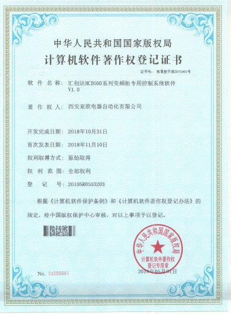 - 關(guān)于我們 - 資質(zhì)榮譽 - 匯創(chuàng)達(dá)HCD500系列變頻柜專用控制系統(tǒng)軟件